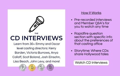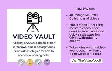 Plus, monthly Q&A's with top casting directors, twice monthly group career strategy sessions with working actors and coaches, an incredible community of other actors, how-to-guides for all of your goals, and so much more?